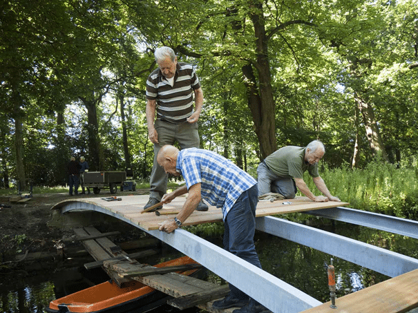 Voor het onderhoud van onze landgoederen werken wij  samen met circa 60 vrijwilligers. De jongste is 38, de oudste 92. Allemaal mensen die de natuur bij ons een warm hart toedragen en graag een bijdrage willen leveren aan het onderhoud ervan. Zo is er een zaagploeg, een bostuinploeg, vrijwillige toezichthouder en allround vrijwilligers. Het is een community waar we trots op zijn en die we koesteren. Mooi om te zien dat we daarin ook een bijdrage kunnen leveren aan een deel van de zingeving in het leven voor al deze mensen.
